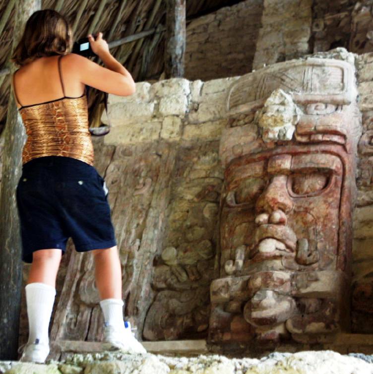 entrance doorway. A remarkable mask of the Sun God Kinichna is protected in a