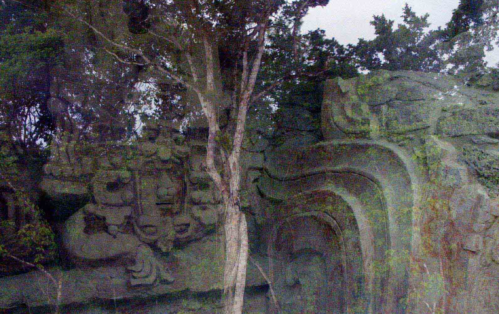 detailed masks of the Itzamna god, also called the Earth Monster. The highest