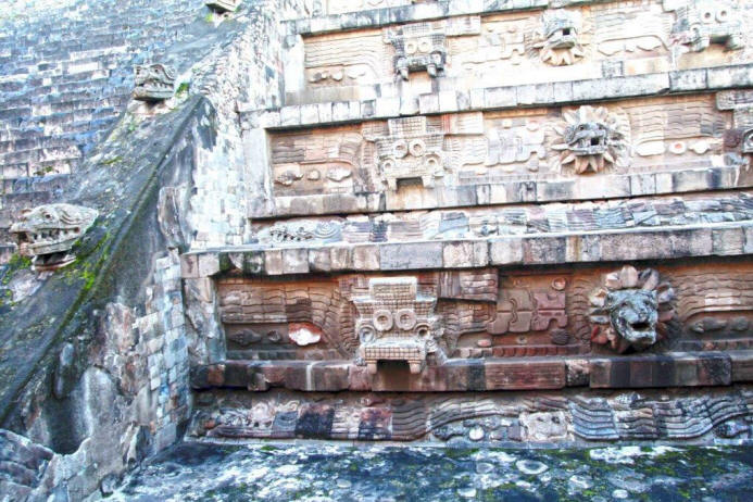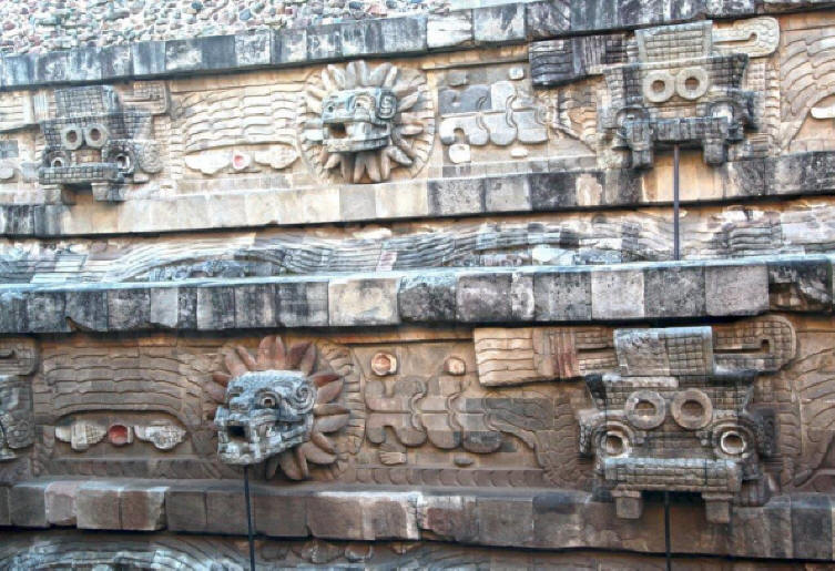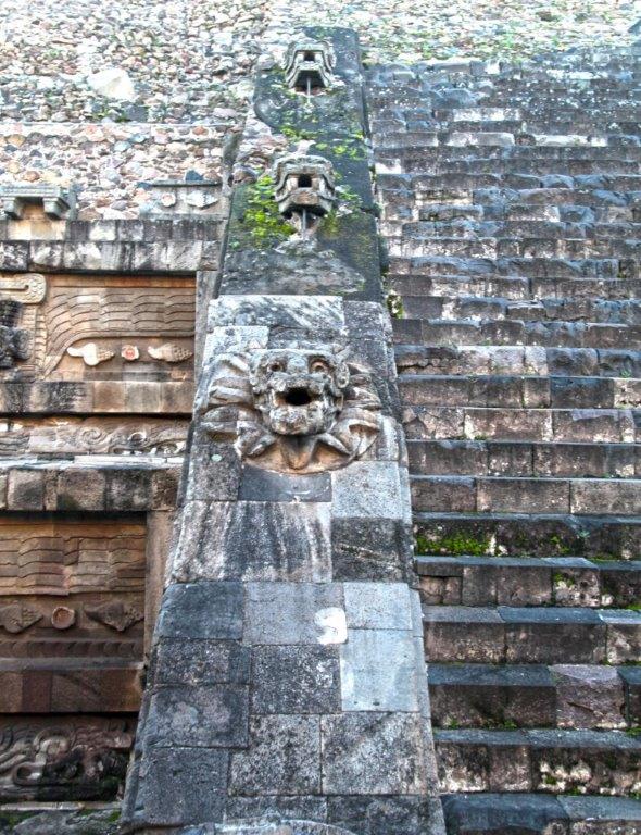 pyramid side alternating with the serpent and then God Tlaloc –