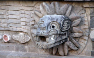 The feathered serpent is the God the Aztecs called Quetzlcoatl