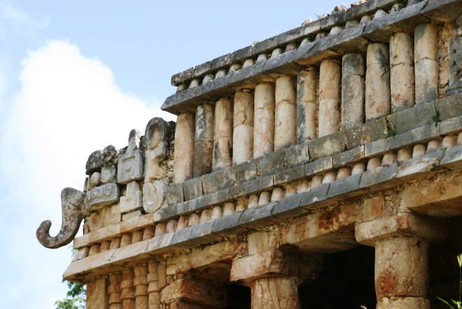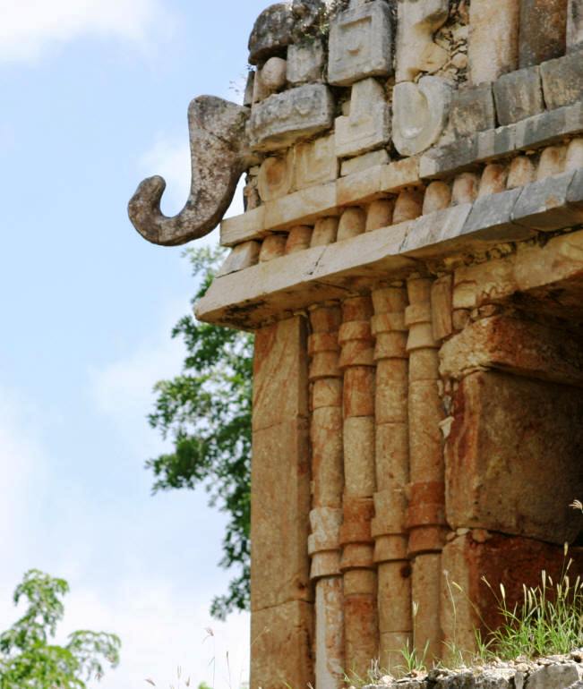 There is also a observatory ("El Mirador") and a stela. Puuc-style columns are a