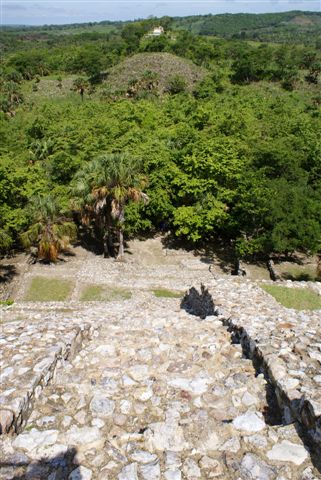 at 140 km west of Calakmul, on the banks of the